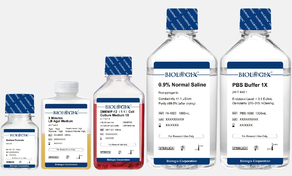Biologix 秉承 cGMP 生产标准,持续优化,专注于为客户提供卓越品质的试剂产品。产品线全面覆盖细胞培养、微生物培养等实验。每一款产品均经过严格质量控制,包括无酶无菌检测、内毒素检测等实验验证,确保了产品质量的稳定性。