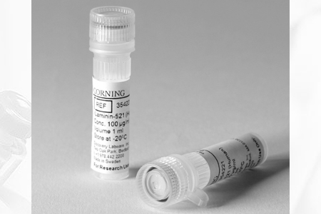 Corning® rLaminin-521, Human, 5mg (50 x 100μg Vials)Corning rLaminin-521 (Human) is a heterotrimer composed of α5, β2, and γ1 chains expressed in a mammalian cell culture system. rLaminin-521 (Human) supports long-term self-renewal of human pluripotent stem cells (hPSC), including embryonic stem cells (hESC) and induced pluripotent stem cells (iPSC) in defined and xeno-free environments. rLaminin-521 provides additional benefits, including ROCK inhibitor independent single cell expansion of PSCs, which improves hPSC culture ease and efficiency.